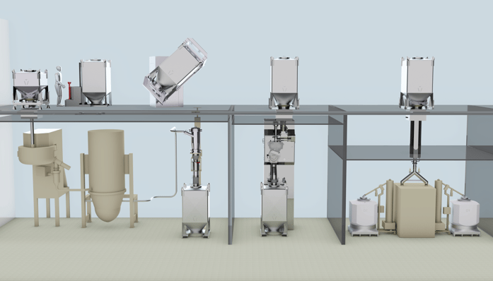 As the Matcon System is decoupled, powder recipes can be formulated and added directly into an IBC, at any time, by following either the Matcon Sack Tip process or the Flexibatch process.