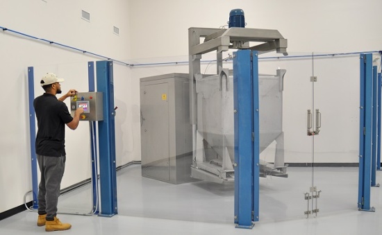 In addition, a high lift hopper—which has twice the normal vertical reach of a standard hopper—demonstrates how to handle more difficult flowing powders.
